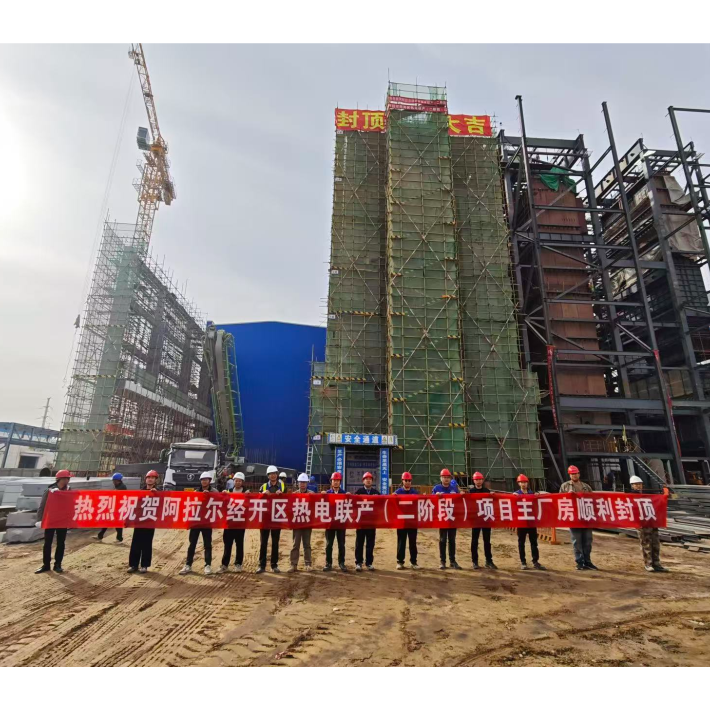 新疆阿拉爾經(jīng)濟(jì)技術(shù)開發(fā)區(qū)熱電聯(lián)產(chǎn)(二階段)項目主廠房順利封頂